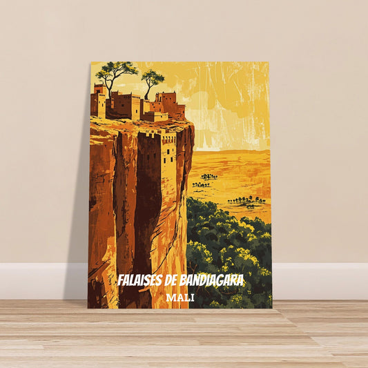 Inspirées des affiches touristiques d’antan, ces visuels mettent en scène des destinations emblématiques : Sénégal, Côte d’Ivoire, Mali, Égypte... Les typographies rétro et les compositions graphiques évoquent les brochures des années 50, tout en sublimant le patrimoine africain.