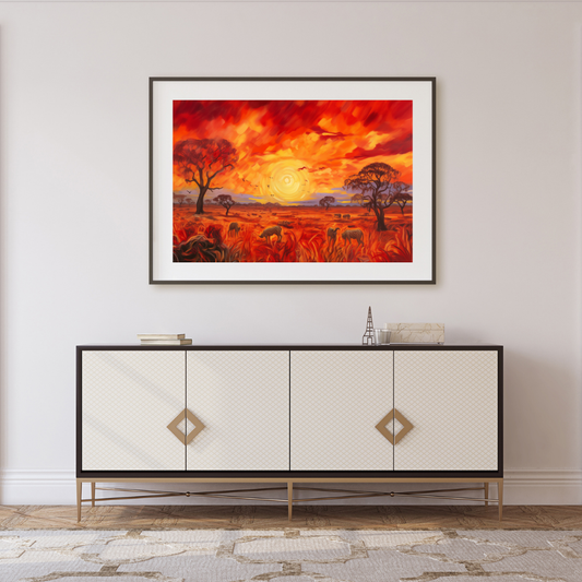 Savane Africaine au Coucher du Soleil | Style Van Gogh