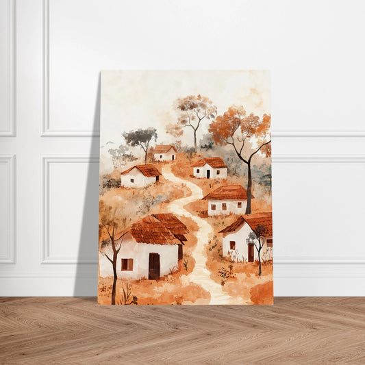 Peinture Village Africain au Lever du Jour - Affiche Aquarelle